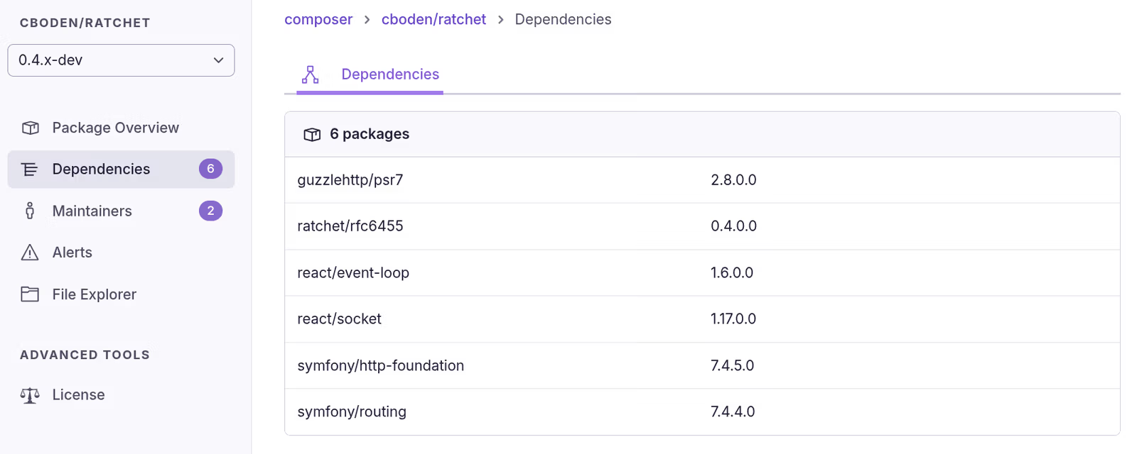 • Search and explore any Composer package to view security scores and dependency insights